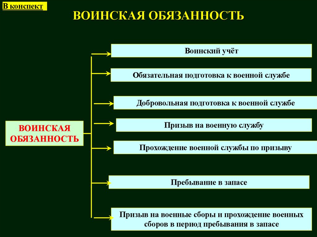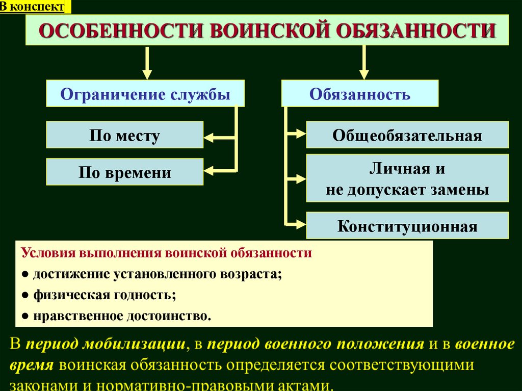 В конспектОСОБЕННОСТИ ВОИНСКОЙ ОБЯЗАННОСТИ
