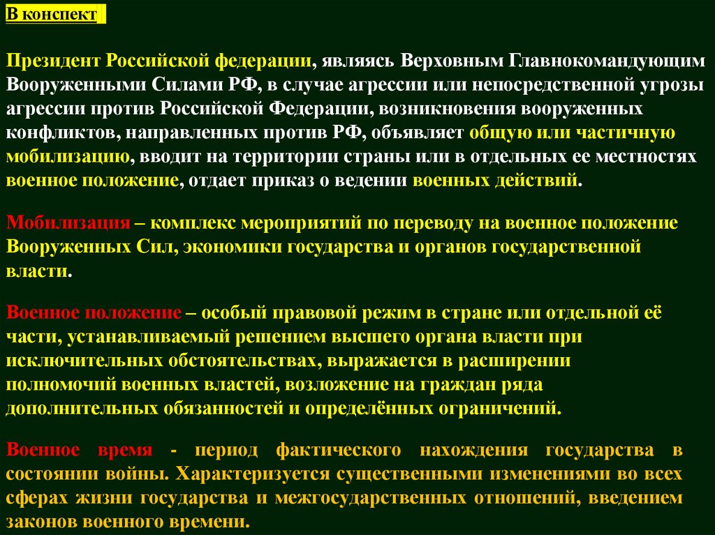 В конспектПрезидент Российской федерации, являясь Верховным Главнокомандующим
