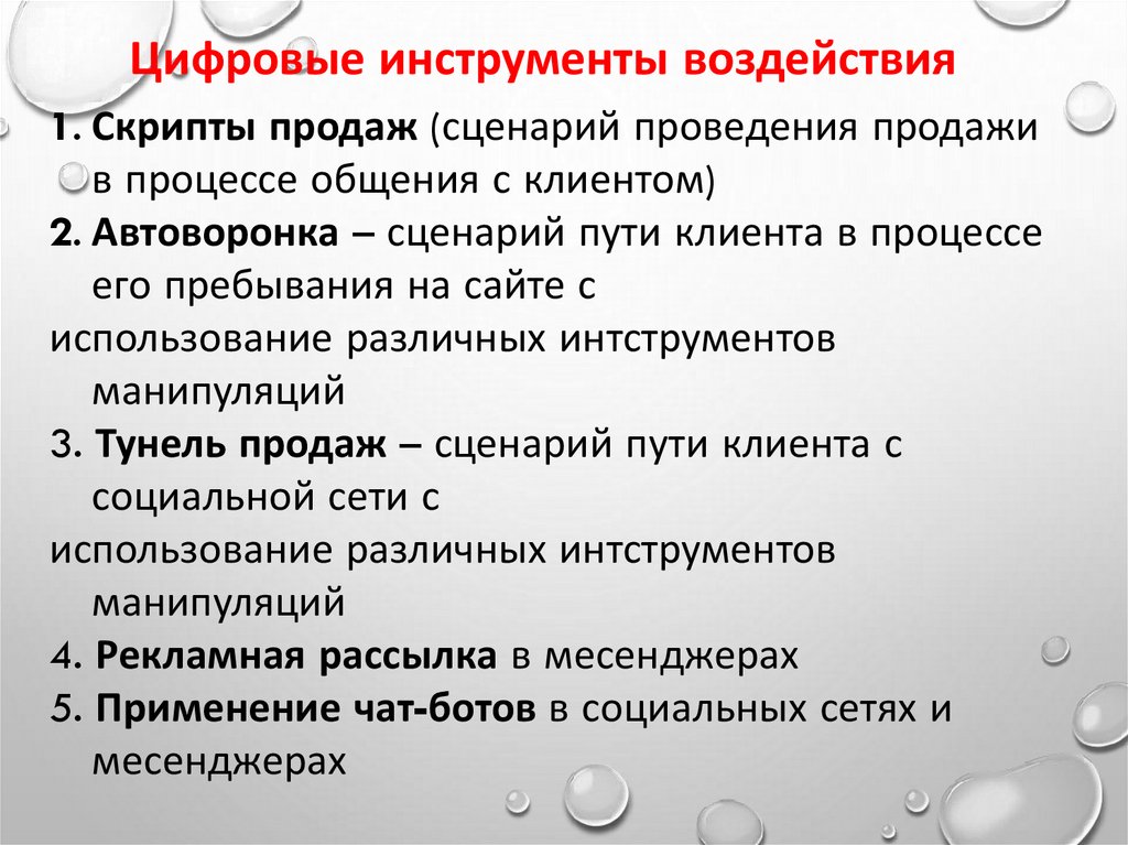 Цифровые инструменты воздействия1. Скрипты продаж (сценарий проведения продажи