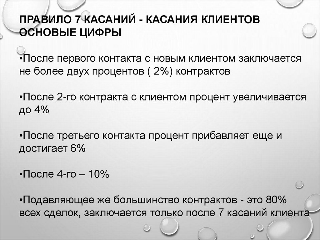 ПРАВИЛО 7 КАСАНИЙ - КАСАНИЯ КЛИЕНТОВОСНОВЫЕ ЦИФРЫ