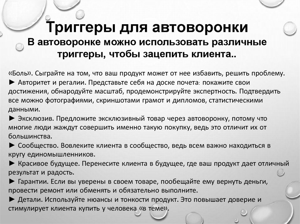 Триггеры для автоворонкиВ автоворонке можно использовать различные