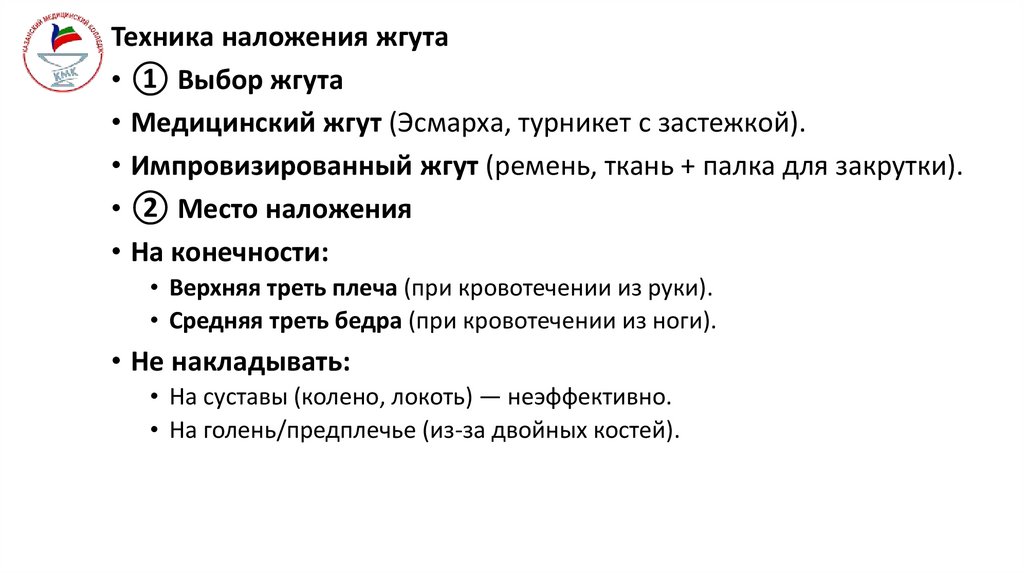 • ❌ Наложение на голое тело → некроз кожи.❌ Слабое затягивание → усиление венозного кровотечения.