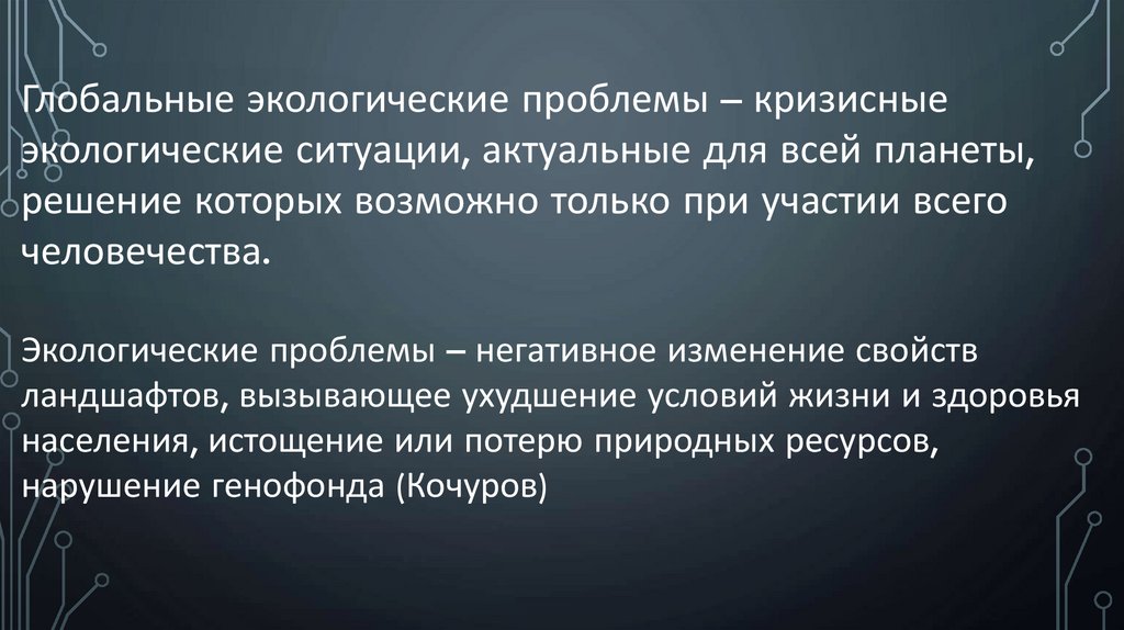 Глобальные экологические проблемы – кризисныеэкологические ситуации, актуальные для всей планеты,