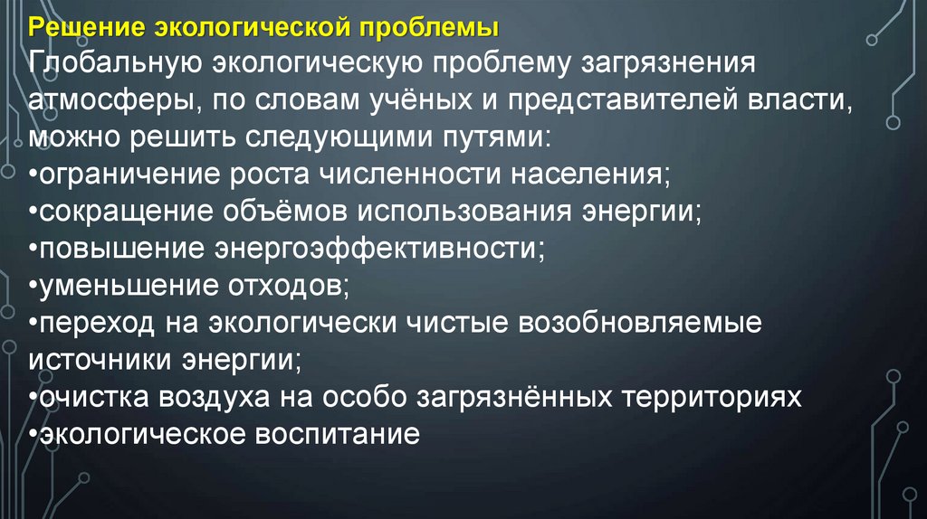 Решение экологической проблемыГлобальную экологическую проблему загрязнения