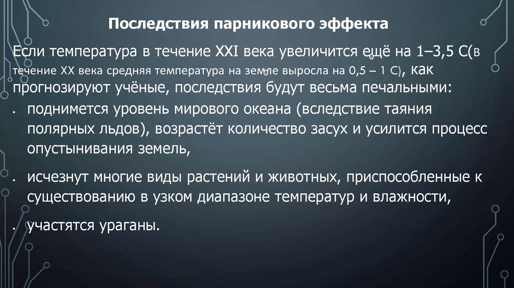 Последствия парникового эффектаЕсли температура в течение XXI века увеличится ещё на 1–3,5 C(В