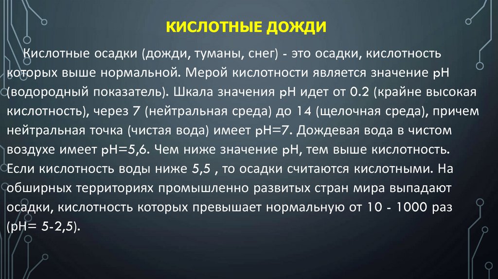 КИСЛОТНЫЕ ДОЖДИКислотные осадки (дожди, туманы, снег) - это осадки, кислотность