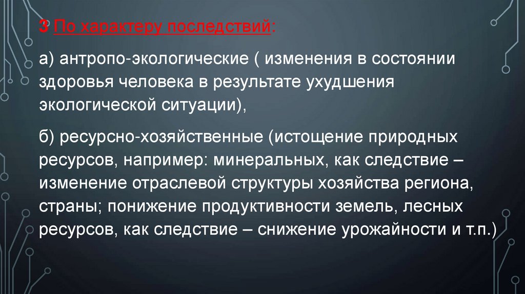 3 По характеру последствий:а) антропо-экологические ( изменения в состоянии