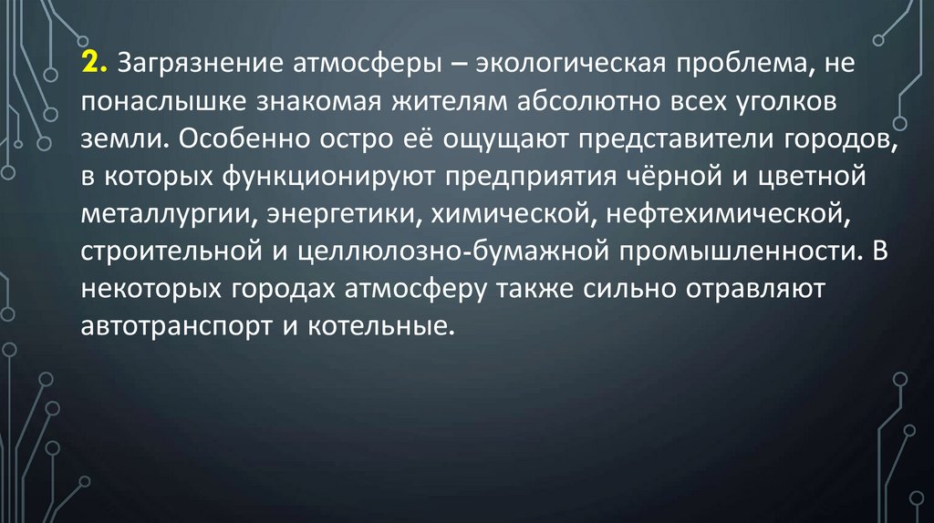 2. Загрязнение атмосферы – экологическая проблема, непонаслышке знакомая жителям абсолютно всех уголков