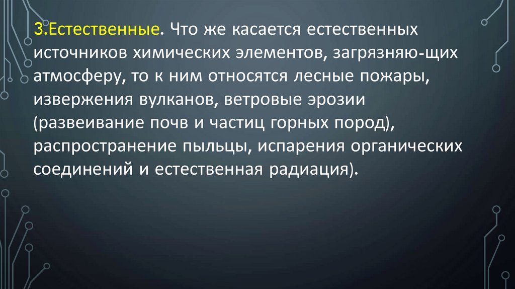 3.Естественные. Что же касается естественныхисточников химических элементов, загрязняю-щих