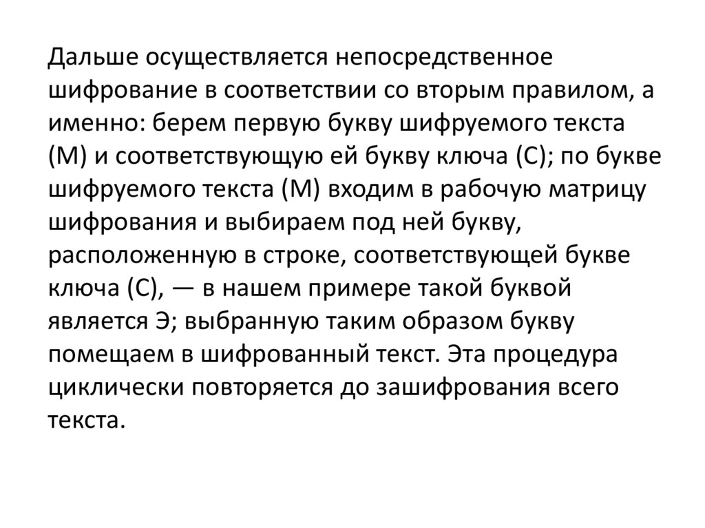 Дальше осуществляется непосредственноешифрование в соответствии со вторым правилом, а