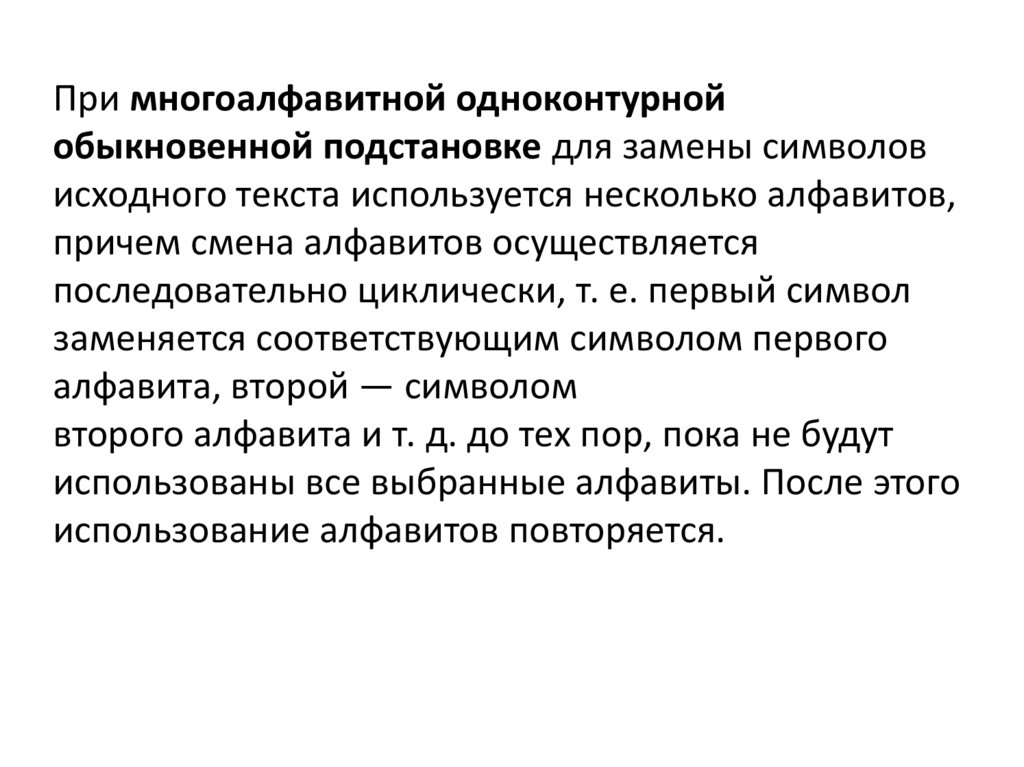 При многоалфавитной одноконтурнойобыкновенной подстановке для замены символов