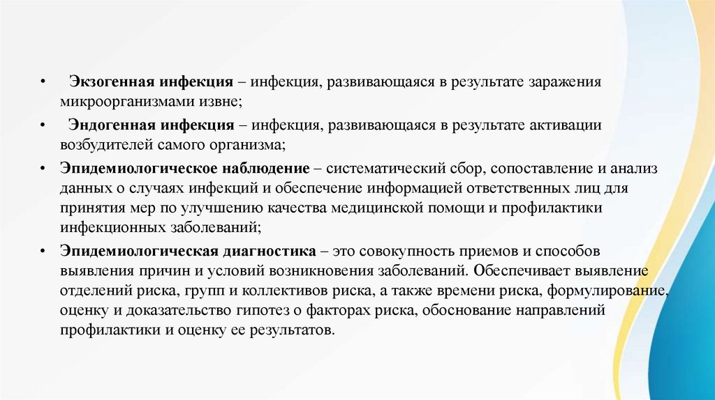риска, присутствующих у пациента (эндогенной инфекции) и связанных с проведением медицинского