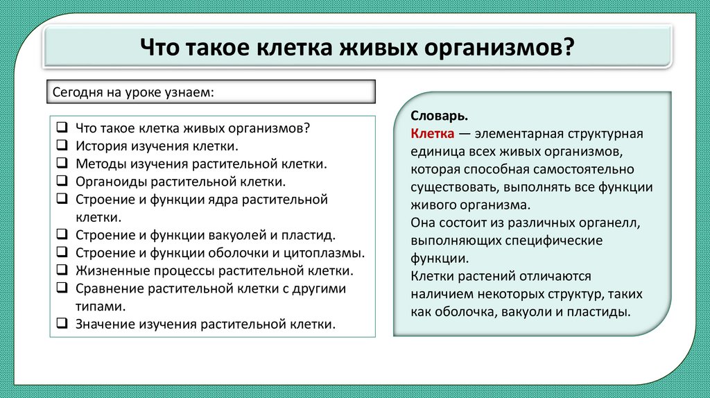 Что такое клетка живых организмов?Сегодня на уроке узнаем: