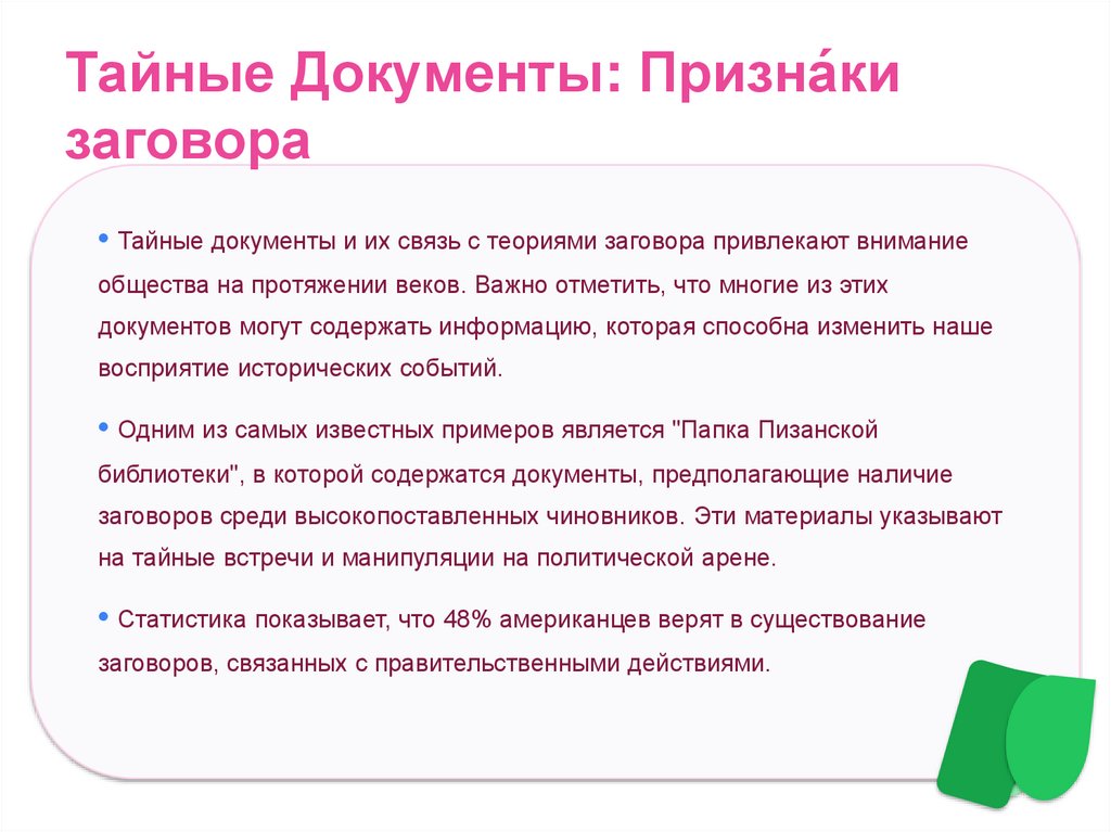 • Тайные документы и их связь с теориями заговора привлекают внимание