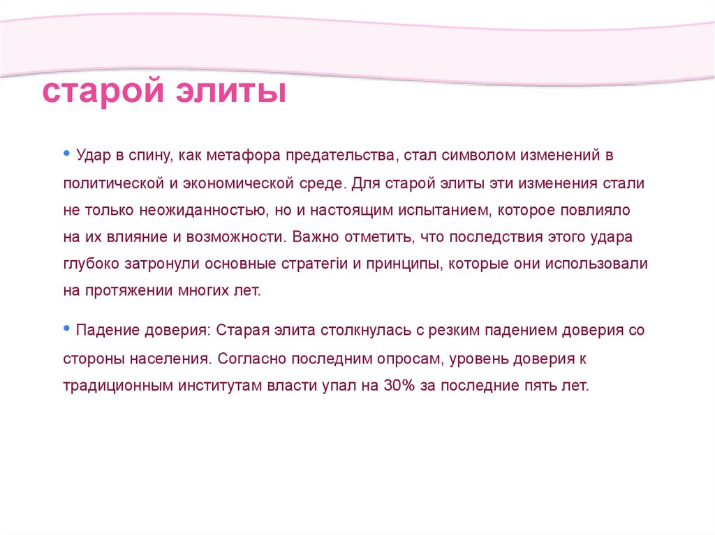 • Падение доверия: Старая элита столкнулась с резким падением доверия со
