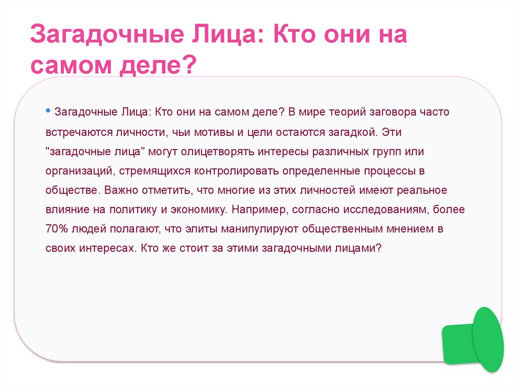 • Загадочные Лица: Кто они на самом деле? В мире теорий заговора часто
