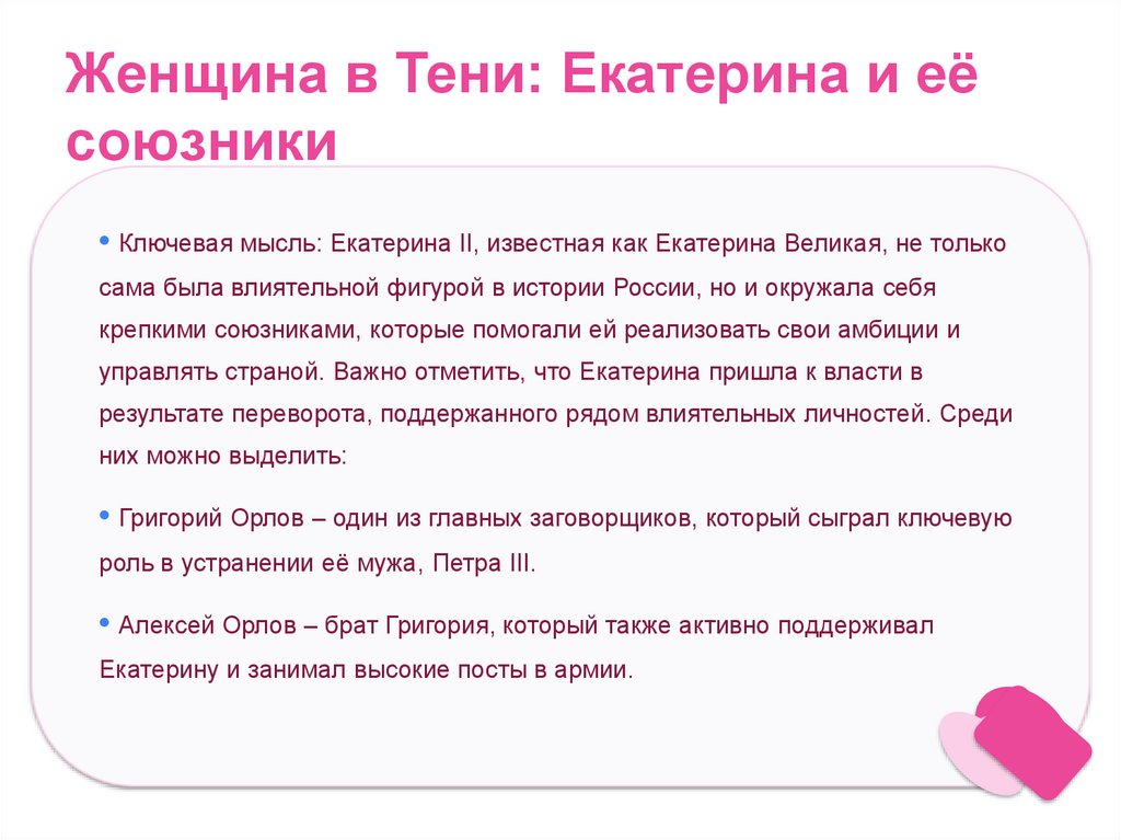 • Ключевая мысль: Екатерина II, известная как Екатерина Великая, не только