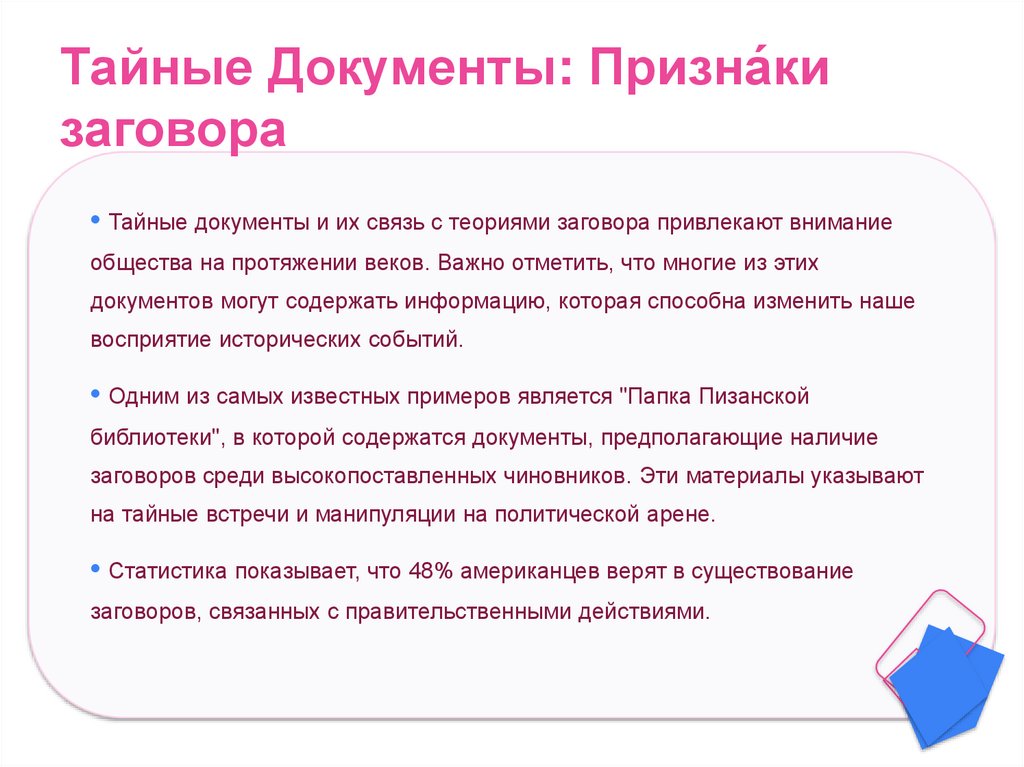 • Тайные документы и их связь с теориями заговора привлекают внимание