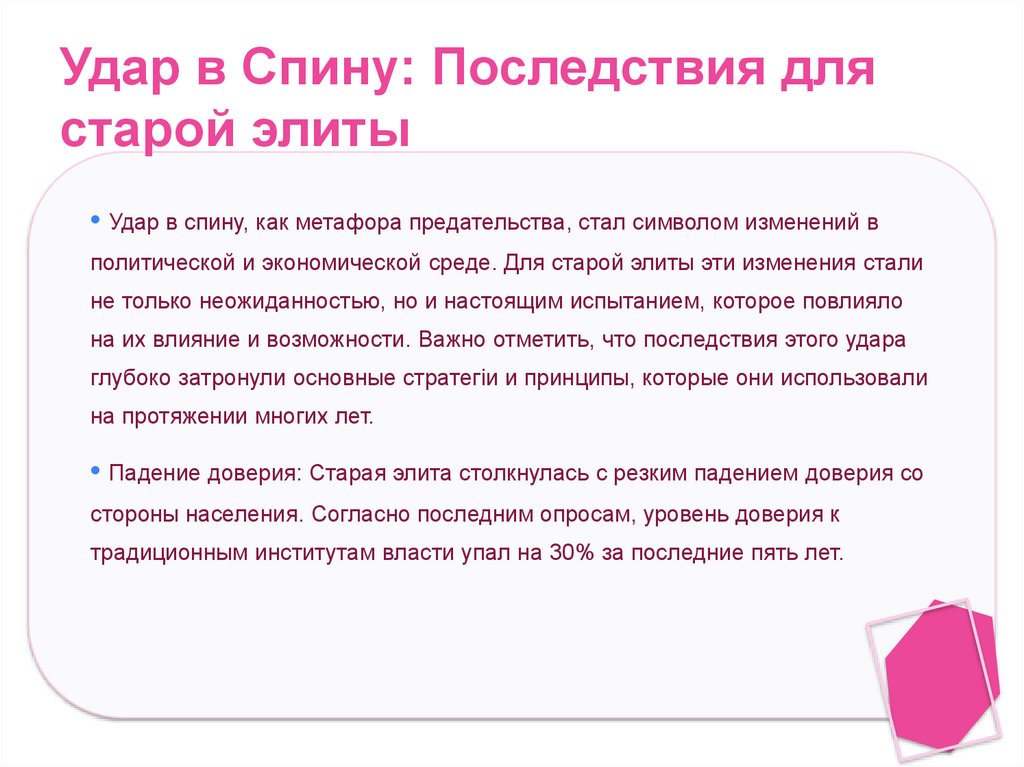 • Удар в спину, как метафора предательства, стал символом изменений в