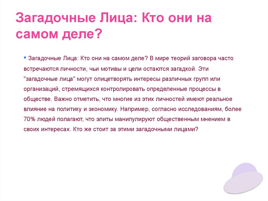 • Загадочные Лица: Кто они на самом деле? В мире теорий заговора часто