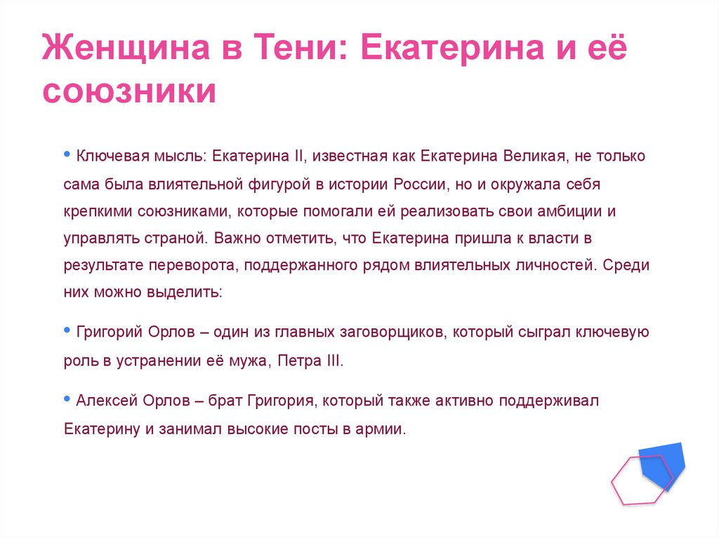 • Ключевая мысль: Екатерина II, известная как Екатерина Великая, не только