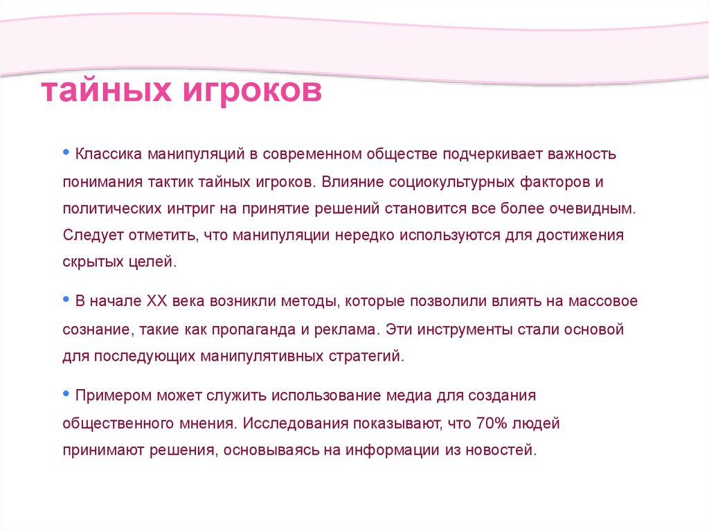 понимания тактик тайных игроков. Влияние социокультурных факторов и