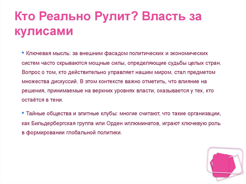 Кто Реально Рулит? Власть закулисами