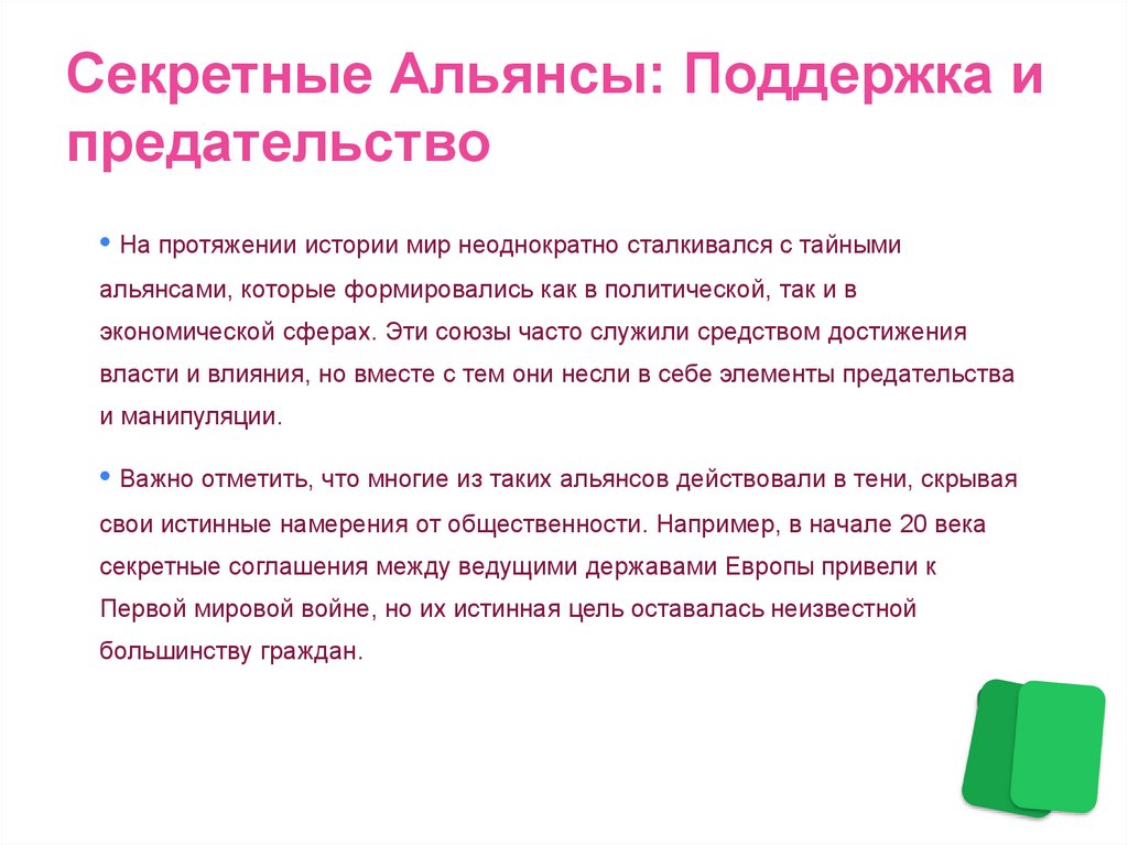 Секретные Альянсы: Поддержка ипредательство