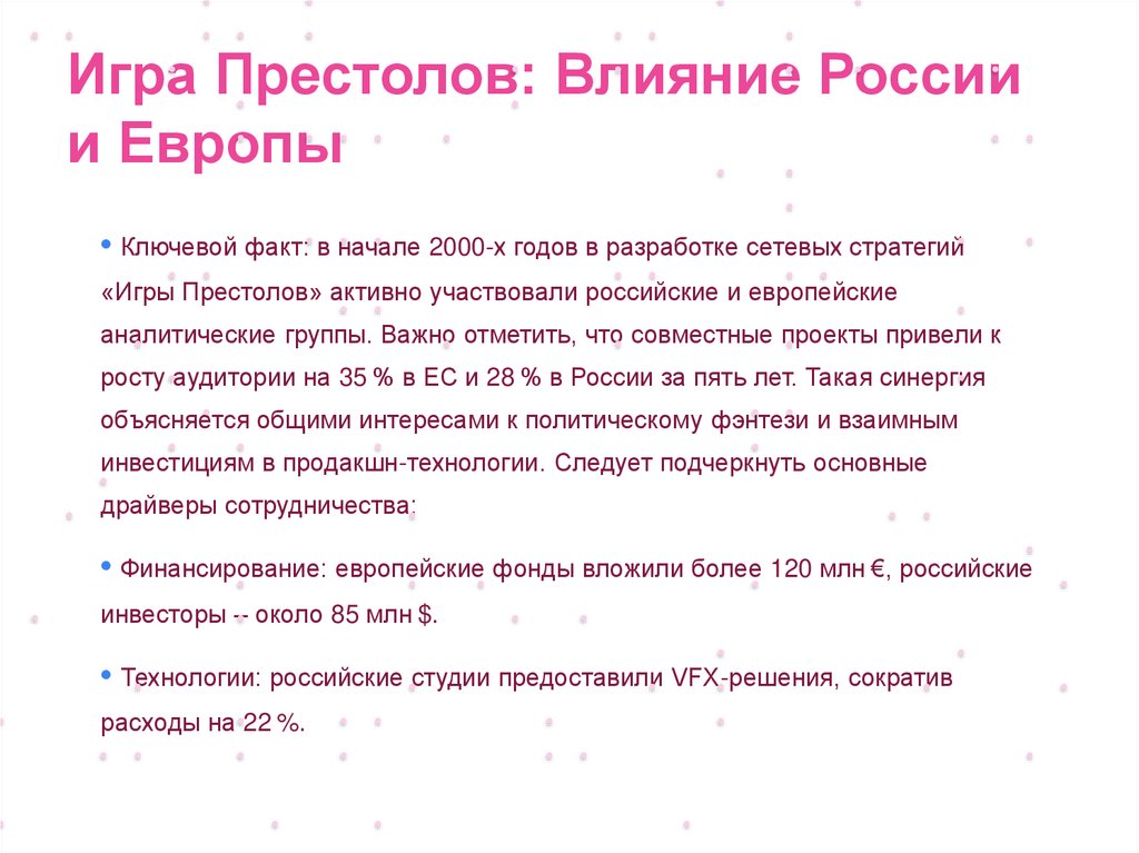 Игра Престолов: Влияние Россиии Европы