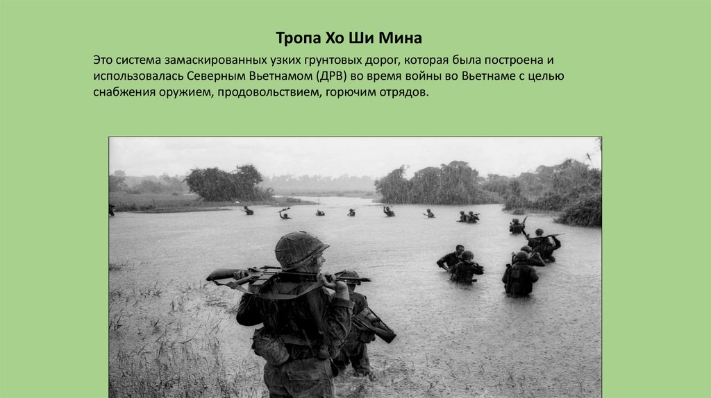 Тропа Хо Ши МинаЭто система замаскированных узких грунтовых дорог, которая была построена и