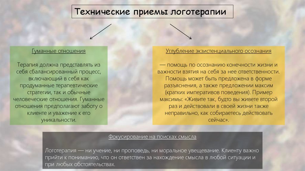 Логотерапия — ни учение, ни проповедь, ни моральное увещевание. Клиенту важно