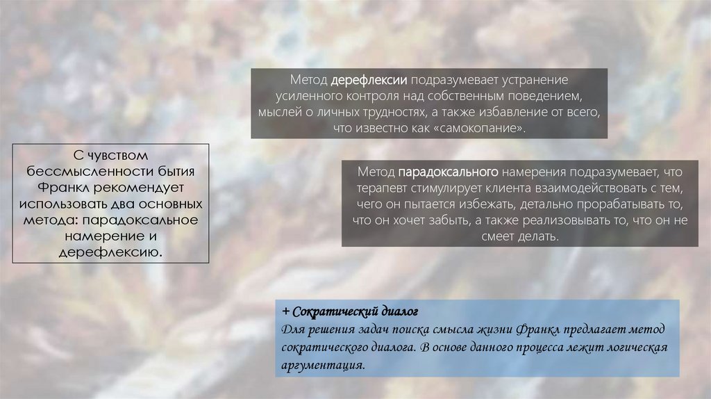 Метод дерефлексии подразумевает устранениеусиленного контроля над собственным поведением,