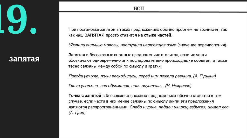 как наш ЗАПЯТАЯ просто ставится на стыке частей.