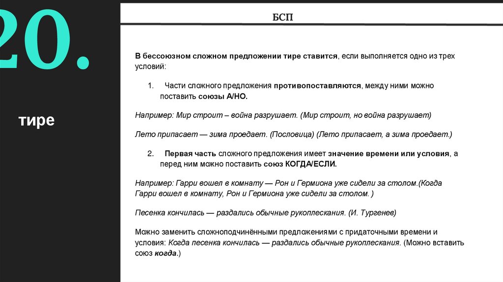 В бессоюзном сложном предложении тире ставится, если выполняется одно из трех