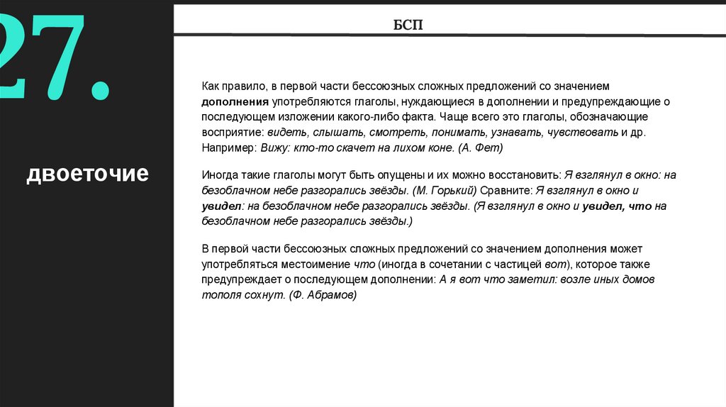 последующем изложении какого-либо факта. Чаще всего это глаголы, обозначающие