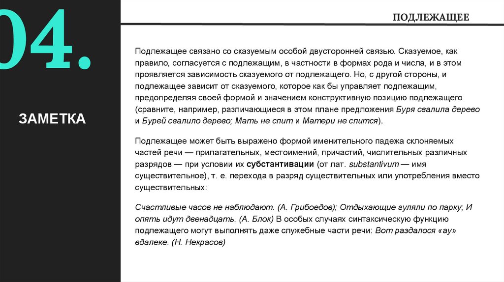 подлежащее зависит от сказуемого, которое как бы управляет подлежащим,