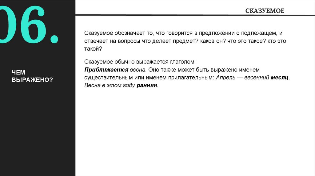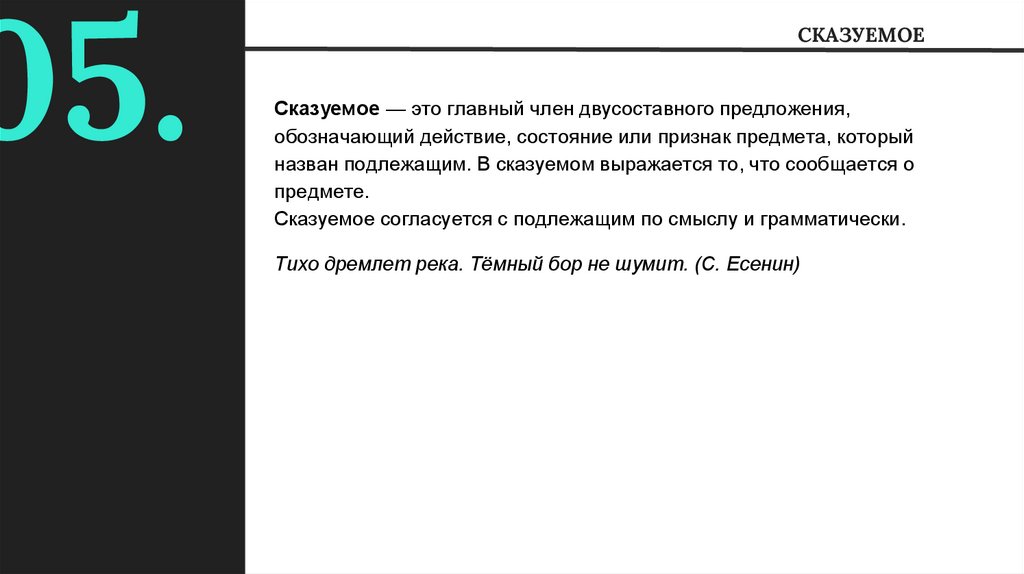 Сказуемое обозначает то, что говорится в предложении о подлежащем, и