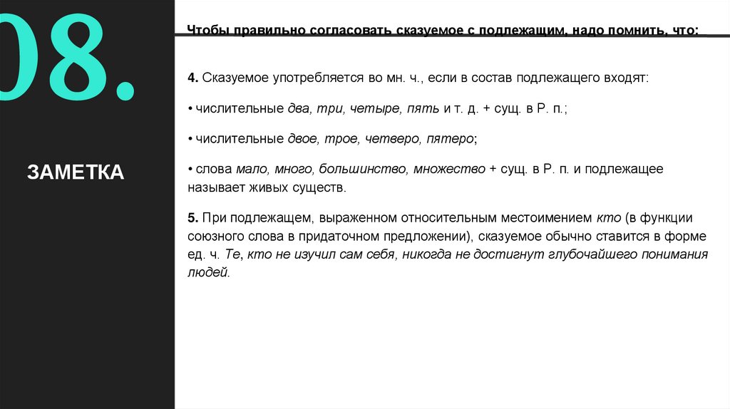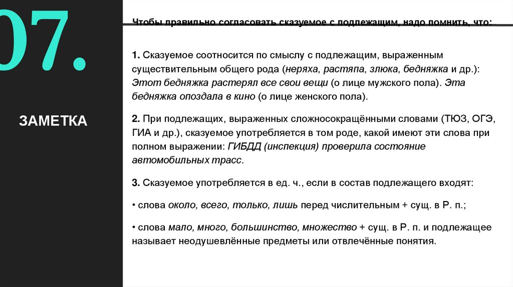 Чтобы правильно согласовать сказуемое с подлежащим, надо помнить, что: