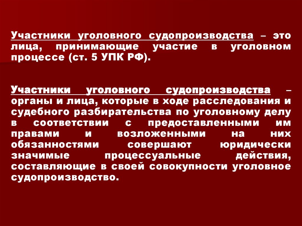 Участники уголовного судопроизводства – этолица, принимающие участие в уголовном