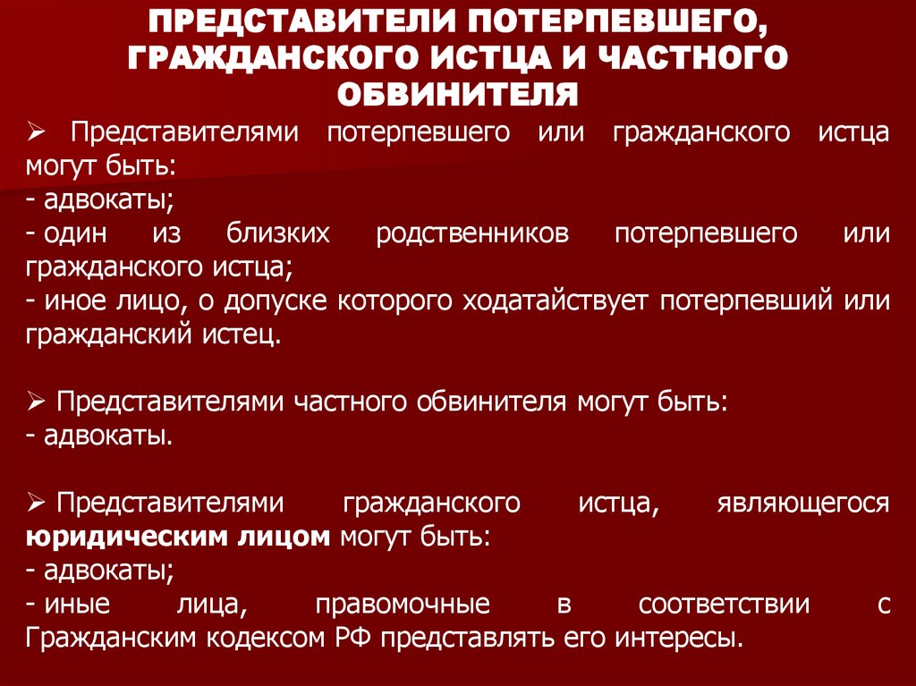 ПРЕДСТАВИТЕЛИ ПОТЕРПЕВШЕГО,ГРАЖДАНСКОГО ИСТЦА И ЧАСТНОГО