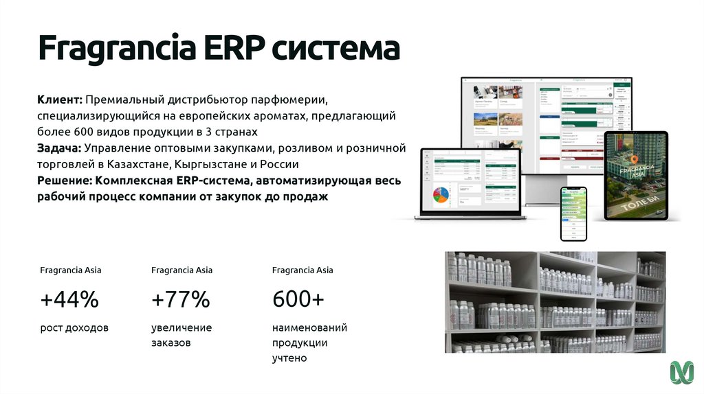 Fragrancia ERP системаКлиент: Премиальный дистрибьютор парфюмерии,