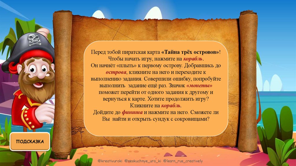 ФИНИШПеред тобой пиратская карта «Тайна трёх островов»!