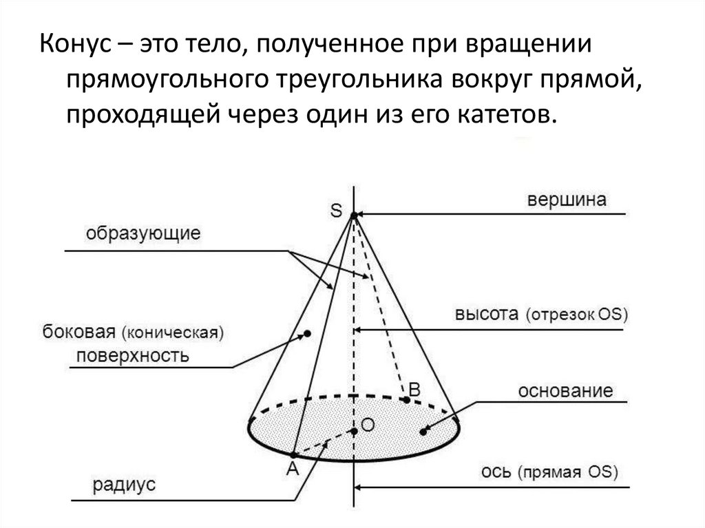 Конус – это тело, полученное при вращениипрямоугольного треугольника вокруг прямой,