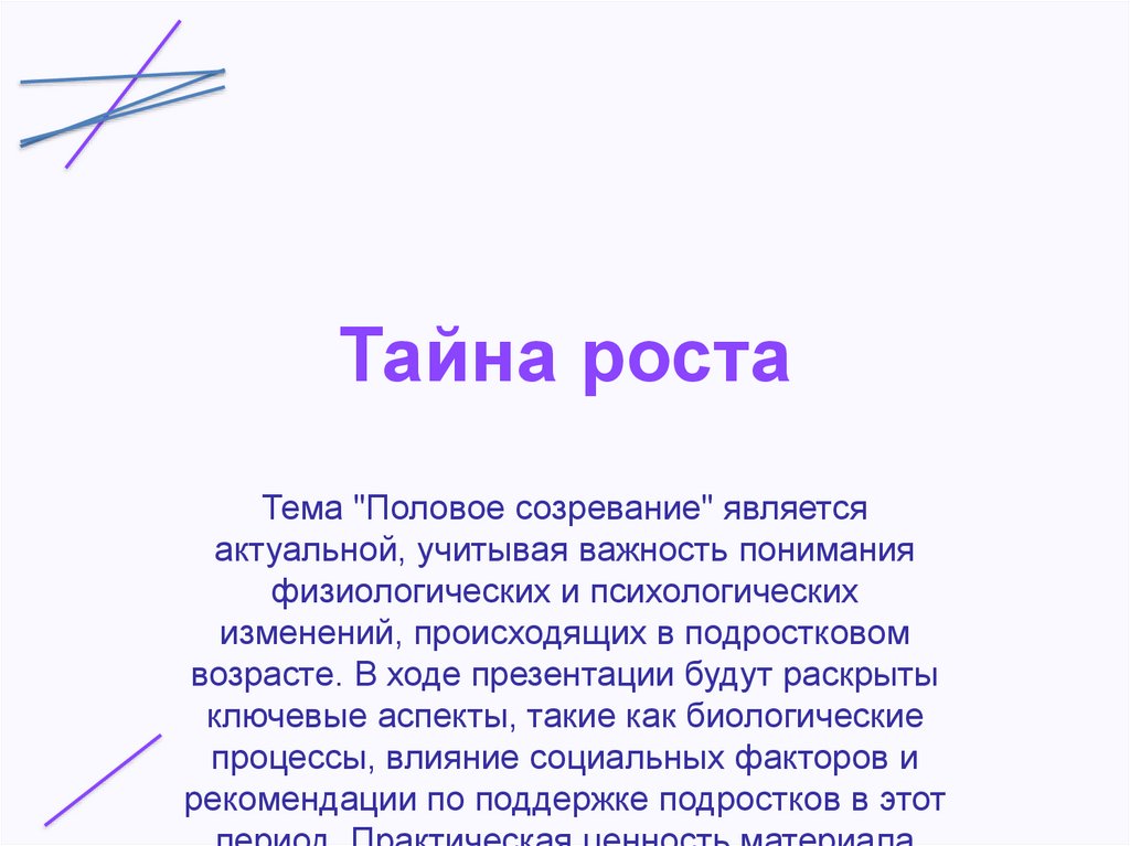 • Половое созревание — это важный этап в жизни каждого человека, который