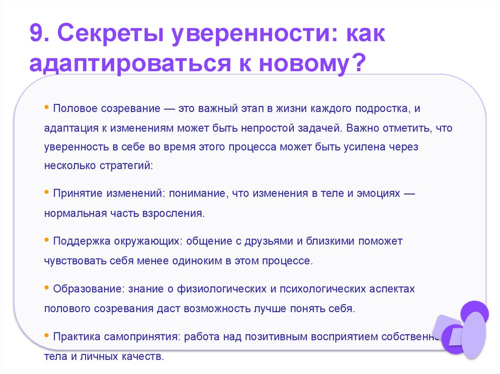 • Принятие изменений: понимание, что изменения в теле и эмоциях —