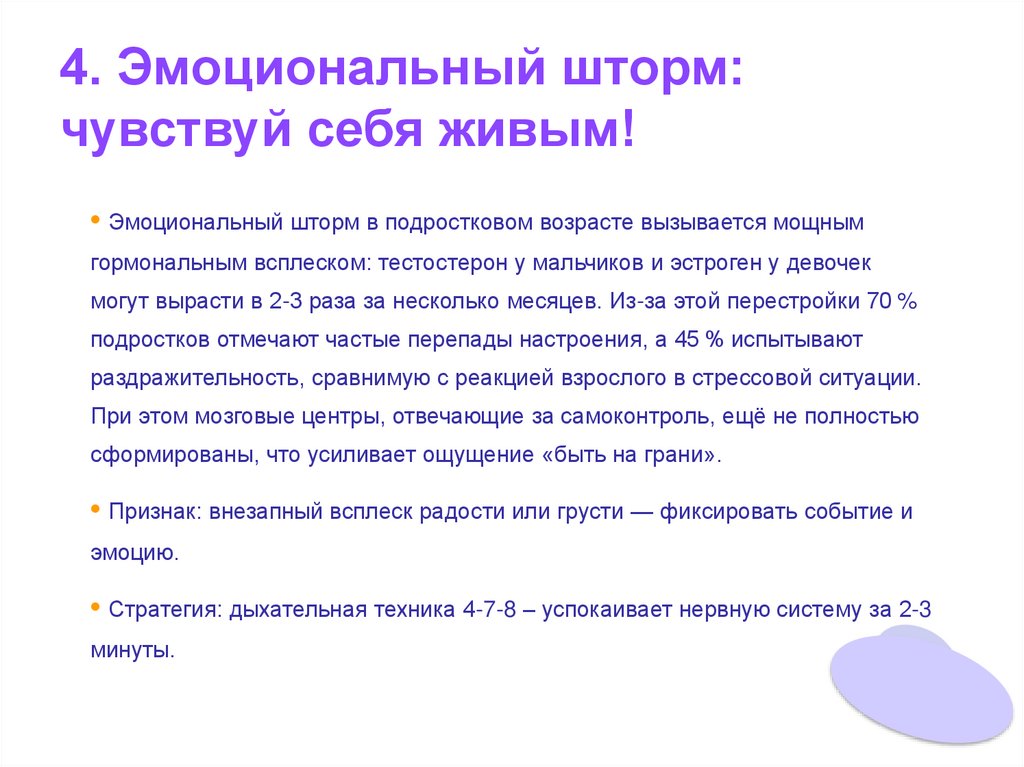 • Эмоциональный шторм в подростковом возрасте вызывается мощным
