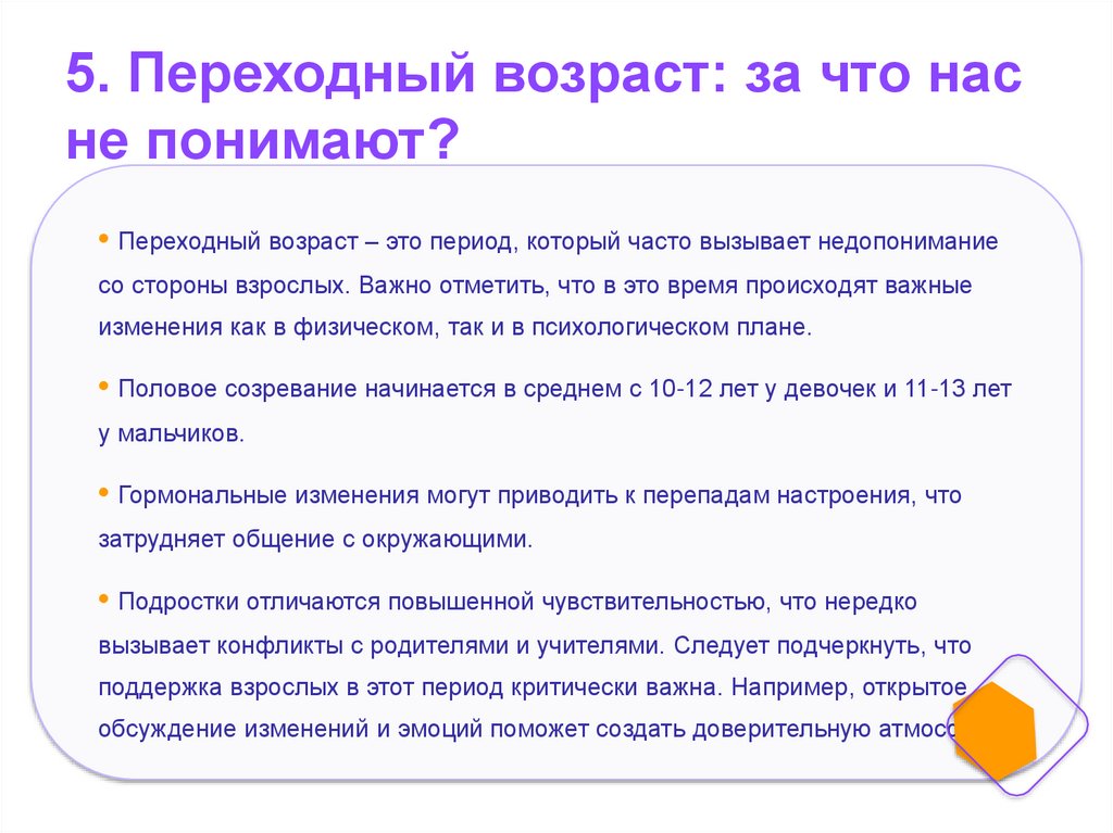 • Переходный возраст – это период, который часто вызывает недопонимание