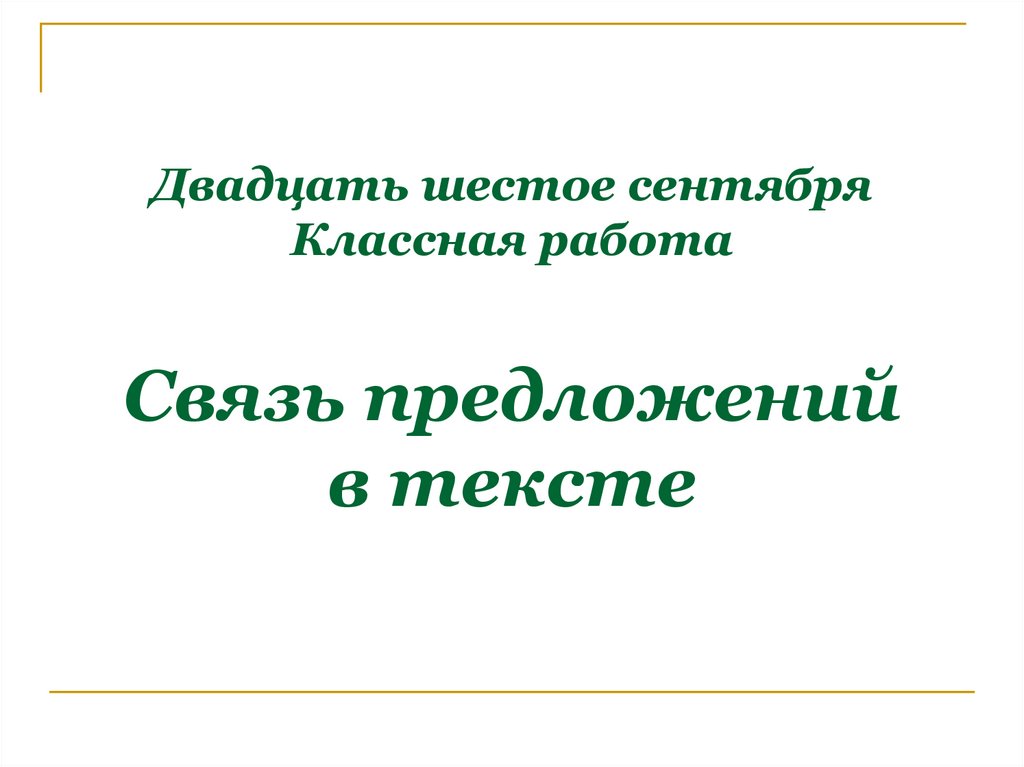 1. Двадцать шестое сентября Классная работа Связь предложений в тексте