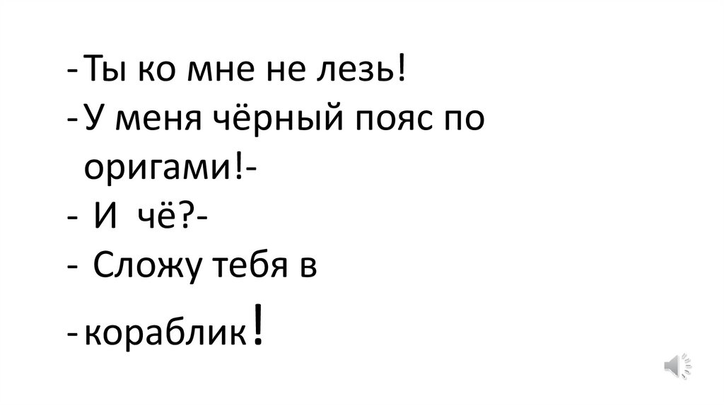- Ты ко мне не лезь!- У меня чёрный пояс по