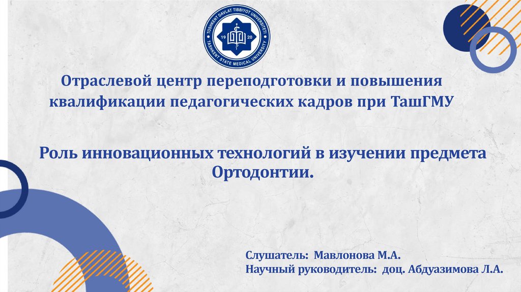 Отраслевой центр переподготовки и повышенияквалификации педагогических кадров при ТашГМУ